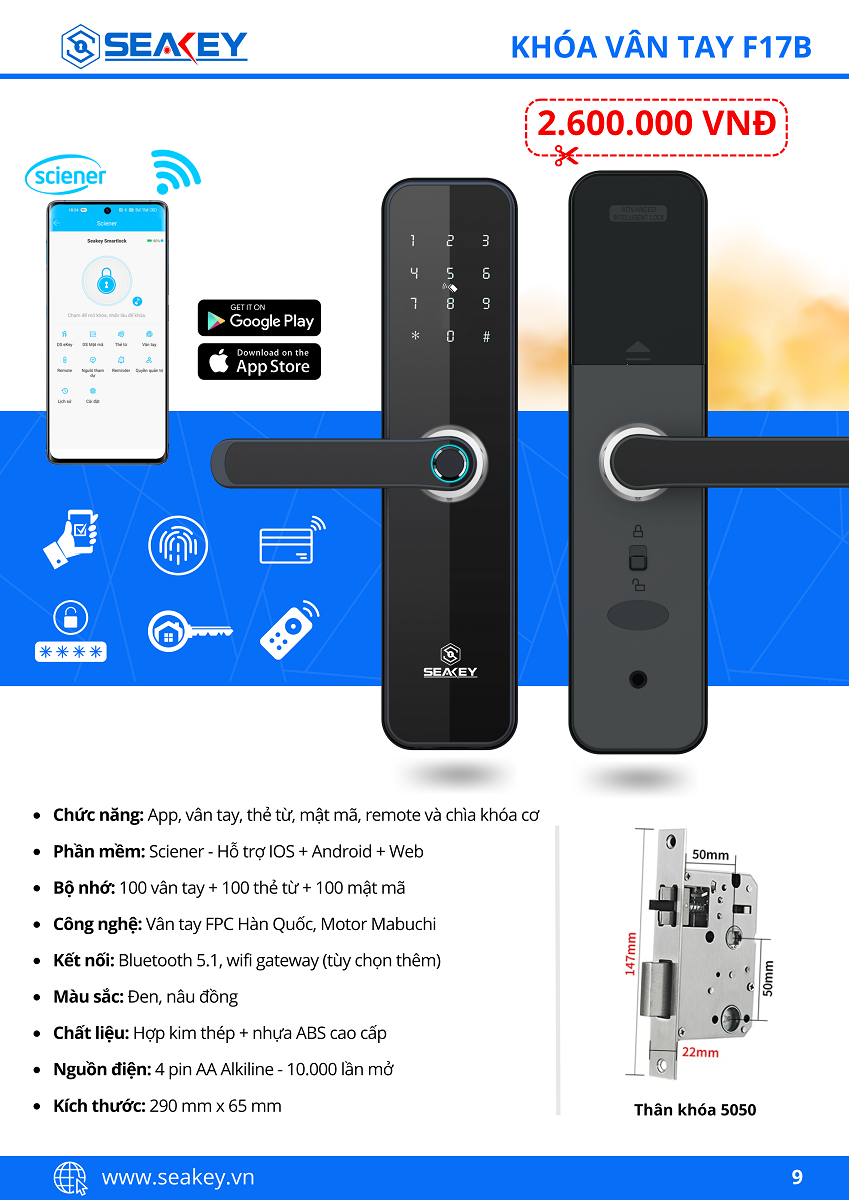 6 cách mở khóa: App điện thoại, vân tay, mật mã, thẻ từ, remote và chìa khóa cơ chống sao chép