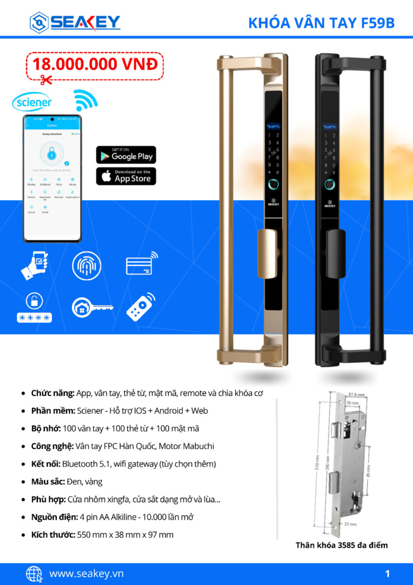 * Thông số kỹ thuật khóa vân tay Seakey F59B: